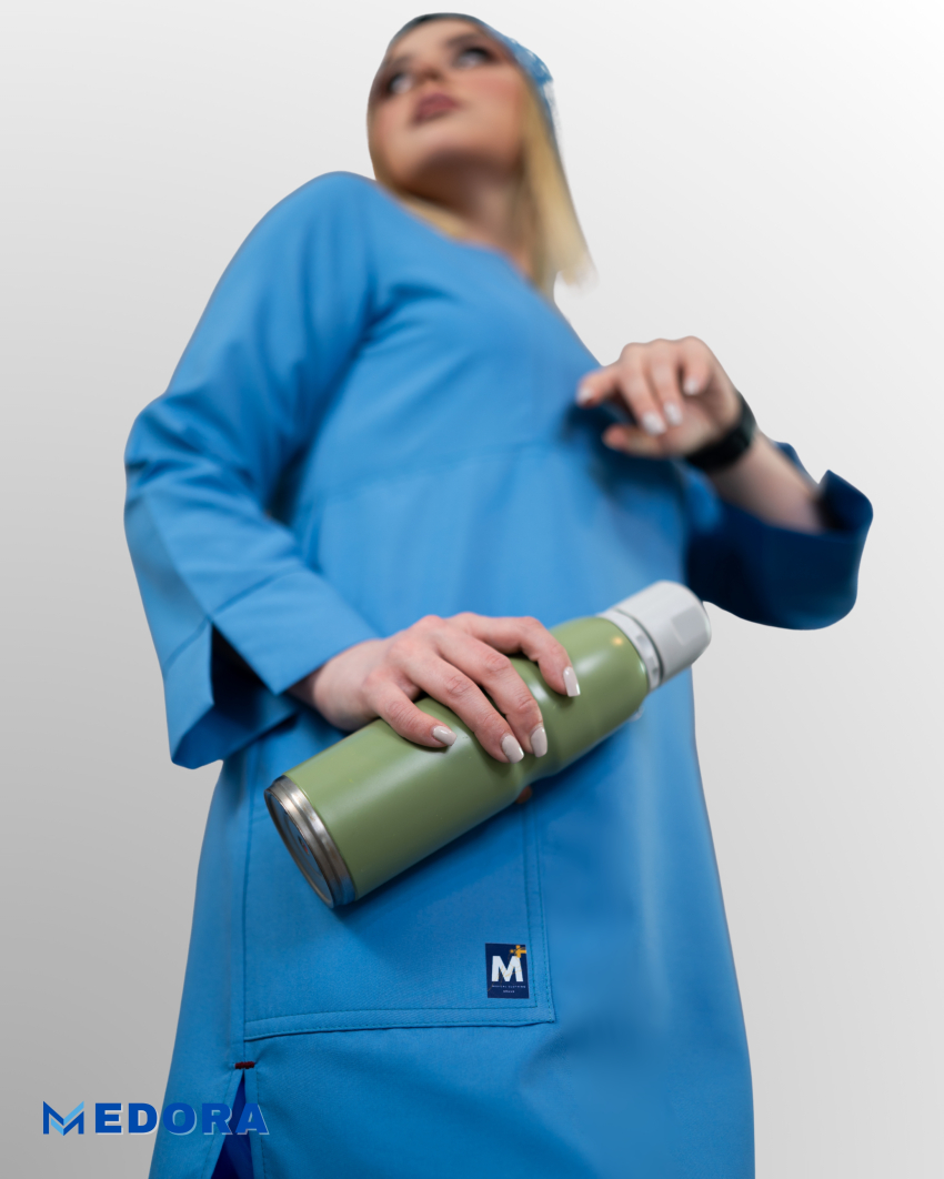 اسکراب شلوار زنانه پزشکی پرستاری مدل فیونا رنگ آبی اطلسی پارچه تمام نخ A+