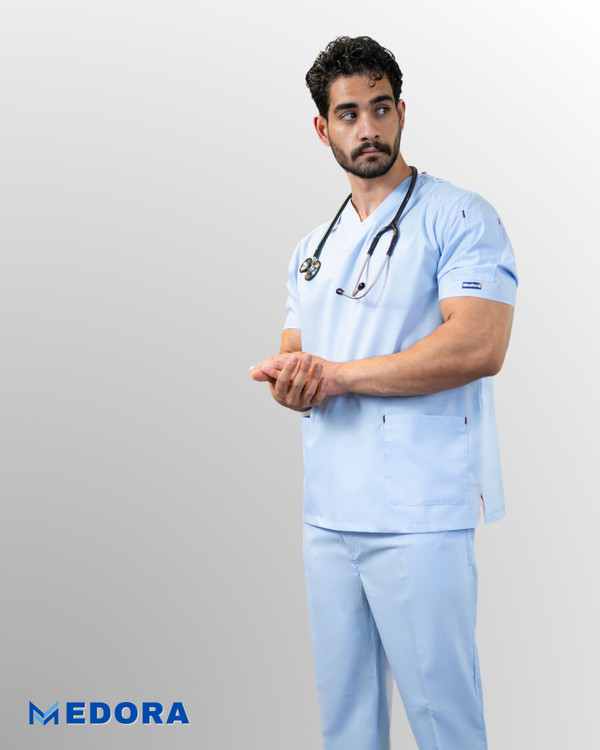 اسکراب شلوار مدل Basic رنگ آبی آسمانی پارچه تمام نح A+